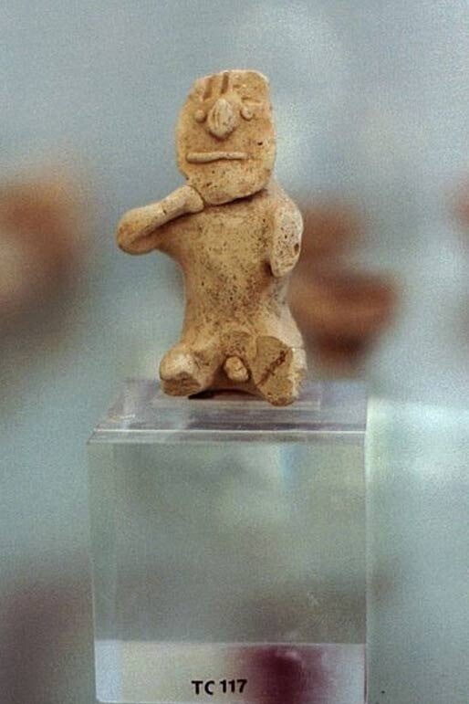 links: Klein kind, waarschijnlijk Opheltes. Klein terracotta uit het heiligdom van Ofeltes in Nemea, rond 500 voor Chr.