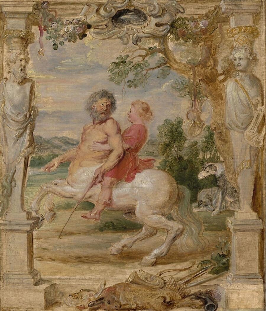 boven: Jan Gossaert - Peleus en Thetis en de jonge Achilles